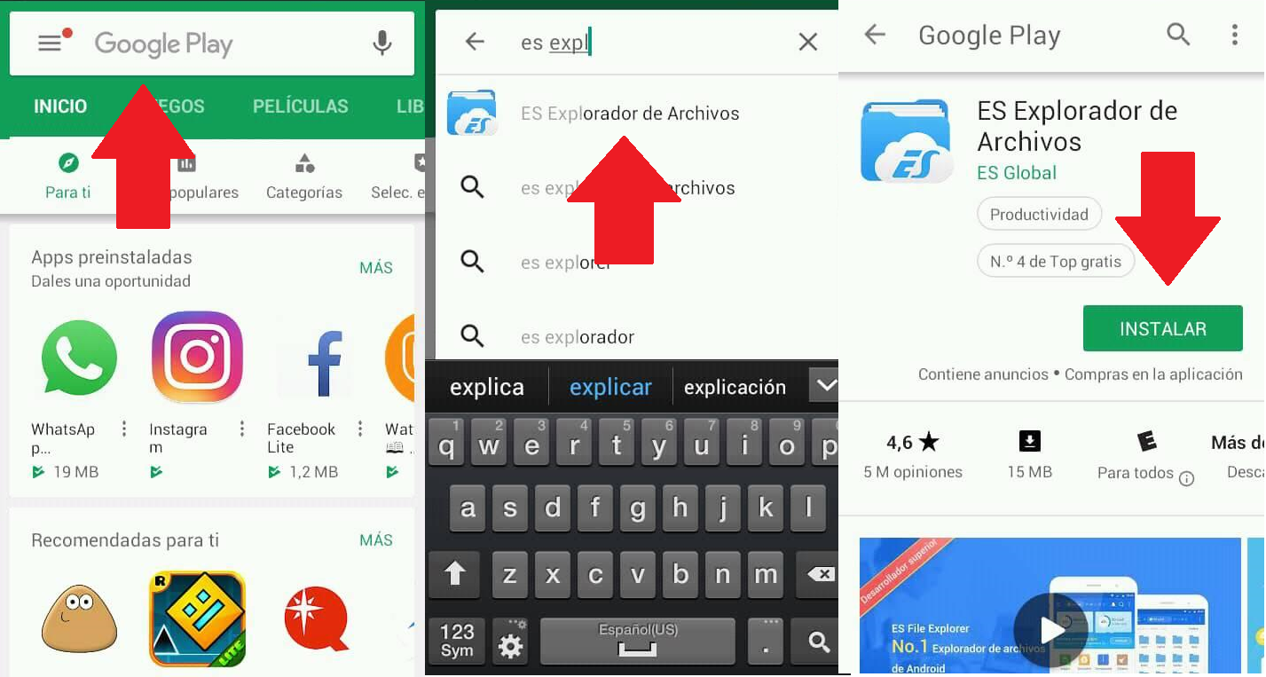 Es debido a esto que es necesario obtener uno desde la tienda de aplicaciones de tu móvil, en este caso, la aplicación más recomendada es “ES Explorador”.