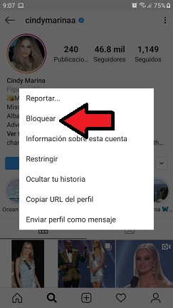 - Como veras se te abrirá un nuevo menú, en el cual debes presionar “Bloquear”.