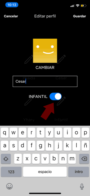 - Con solo dar check en "Infantil" lo tendrás activo para que ese perfil solo pueda ver cosas infantiles y no pueda quitarlo sino tiene la clave.