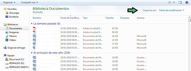 • Por ultimo en la sección de “Ordenar por” tienes que presionar “Fecha de modificación”.