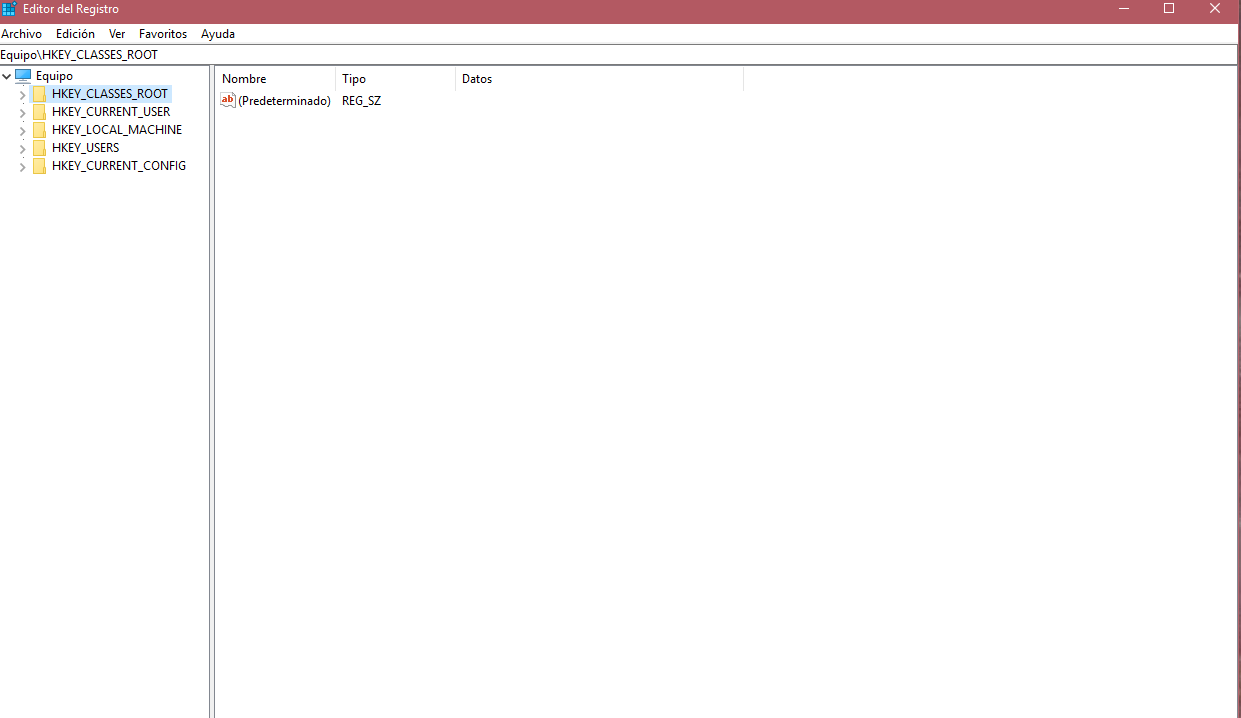 • Seguidamente, tienes que localizar la carpeta "HKEY_CLASSES_ROOT\.txt".
