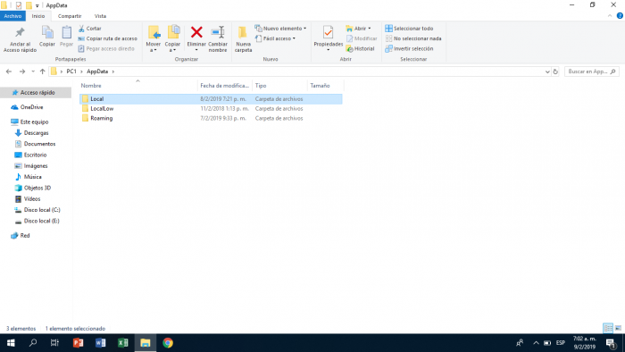 - Cuando hayas ingresado a la carpeta de “Appdata”, encontrarás una subcarpeta titulada como “Local”, debes proceder a abrirla.