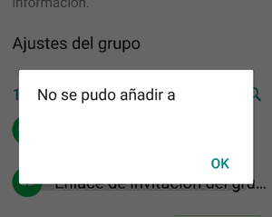 Otro de los indicadores que te pueden decir si te han bloqueado en WhatsApp, es que trates de añadir a esa persona a un grupo. Verás que salta un mensaje en el que se te informa de que esta acción no es posible.