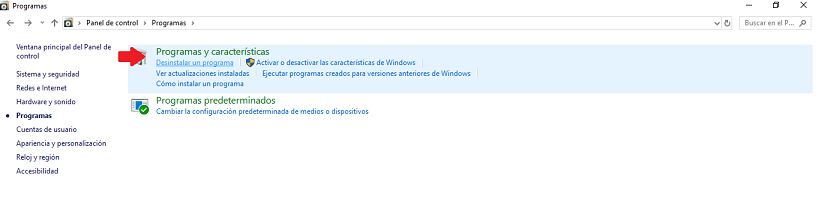 - Una vez que hayas entrado a la opción anterior, debes seleccionar “Programas y características”.