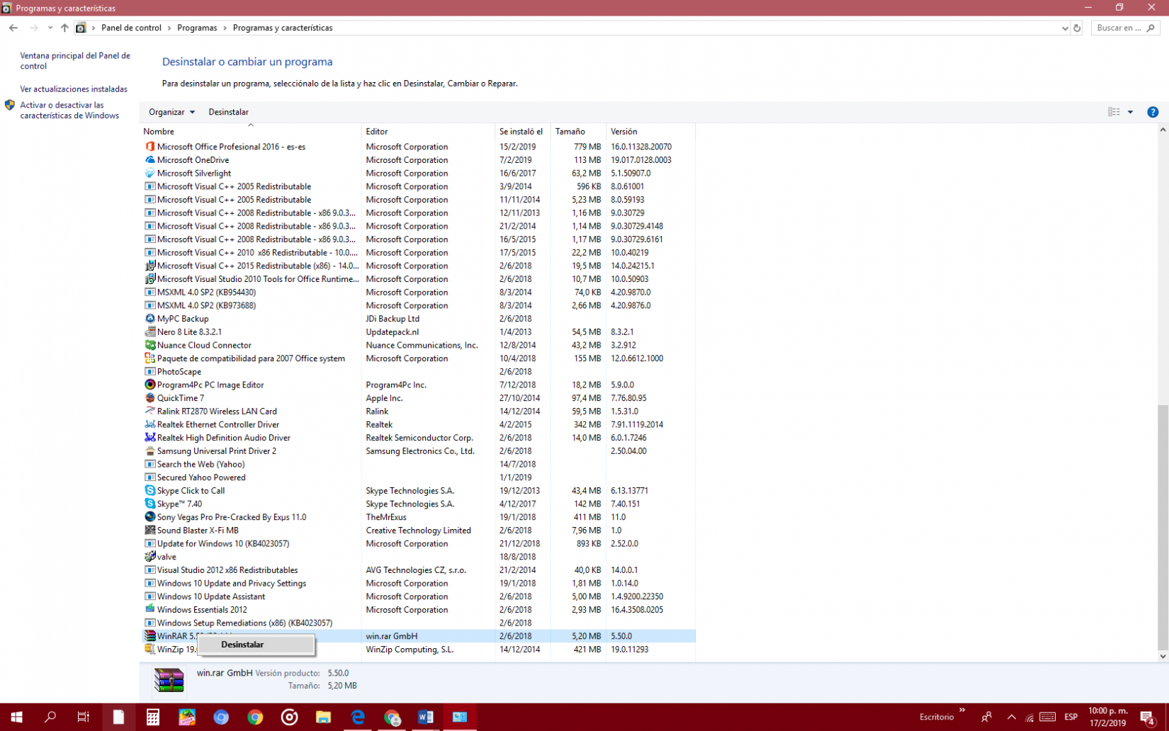 ¡Hola! ¿Cómo te encuentras? A continuación te explicaré como puedes desinstalar WinRAR en tu equipo Windows 10 correctamente de la manera más fácil posible, sin necesidad de descargar ningún programa.