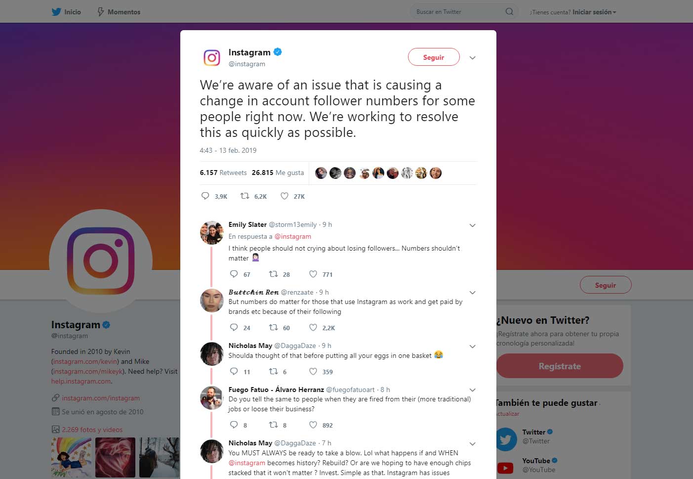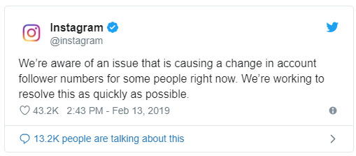 “Somos conscientes de un problema que está causando un cambio en los números de seguidores de la cuenta para algunas personas en este momento. Estamos trabajando para resolver esto lo más rápido posible”.