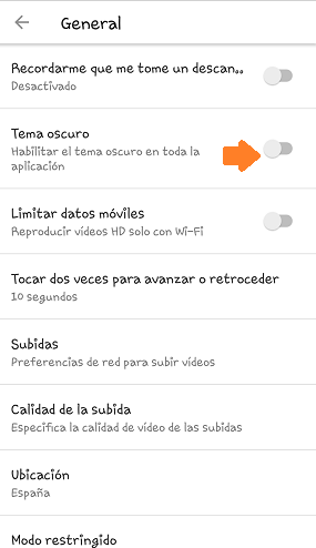 4. Ahora verás la opción de “Tema oscuro”. Desde aquí podrás habilitarlo o deshabilitarlo según quieras.