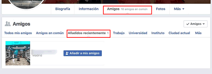 - Luego se muestra una lista con todas aquellas personas que recientemente han sido incorporadas como amigos. De esta manera podrás calcular un tiempo aproximado de amistad entre tu novio y esa persona, la desventaja de este método es que solo funciona si han transcurrido menos de 30 días.