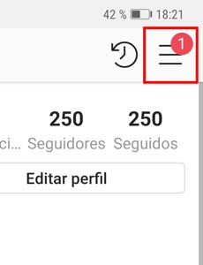 • Busca y presiona el menú de Instagram, este se encuentra en la parte superior derecha de la pantalla y su icono son 3 líneas horizontales en paralelo vertical.