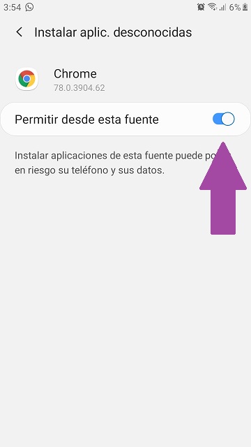 Igualmente, para descargar este archivo primero tienes que habilitar los permisos a aplicaciones desconocidas en tu teléfono, esto lo haces de la siguiente manera: