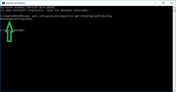 Si quieres saber la clave de tu licencia usando comandos haz lo siguiente: