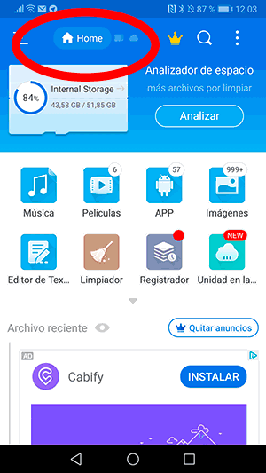 - Primeramente debes pulsar la carpeta con nombre “Home” en la parte superior de tu teléfono