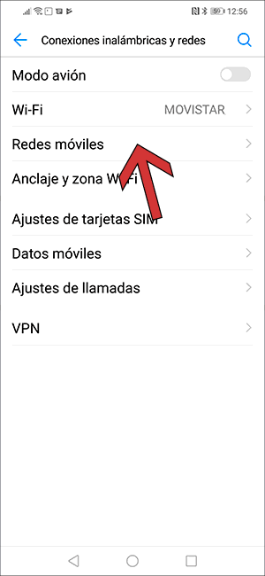 - Como podrás ver, aquí estarán todas las configuraciones de las redes de tu móvil, para colocar un APN nuevo, tienes que ir a donde dice “Redes móviles”.