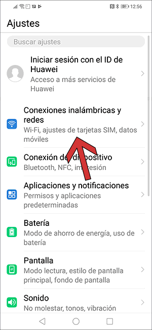 1. Entra en Ajustes de tu móvil Android y después en Conexiones inalámbricas y redes.