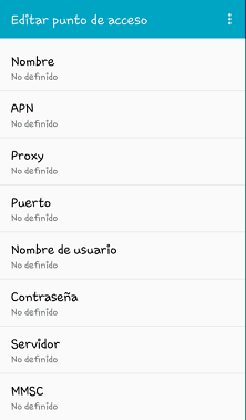 - Se abrirá una sección de escritura para que coloques todos los datos del APN, estos los podrás conseguir en la web.