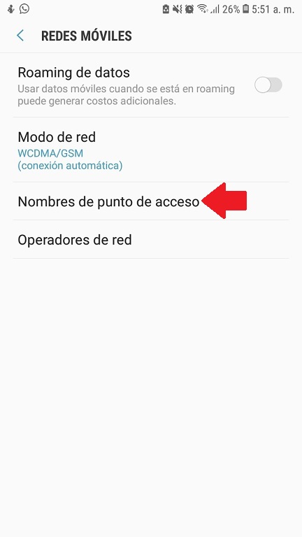 - Lo siguiente, es que en esta nueva pestaña vas a encontrarte con una alternativa llamada “Nombres de puntos de acceso” y selecciónala. Esta es la más importante, porque por medio de ella vas a configurar el APN.