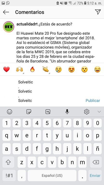 - Este teclado te permite realizar el salto de línea en los comentarios y en las publicaciones que realices desde Instagram sin ningún problema.