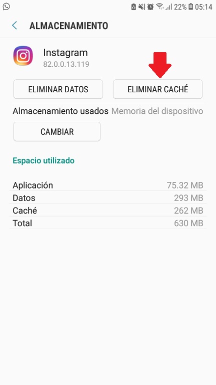 Si compruebas que el inconveniente del sonido de las historias se encuentra únicamente en tu dispositivo, puede que se trate de un problema de la aplicación, motivo por el cual, procede a eliminar la caché de la misma.