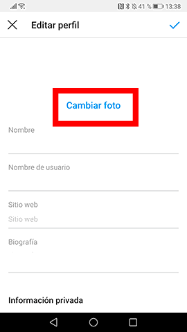 Arriba del todo verás la opción de “Cambiar foto” señalada en color azul. Pulsa aquí.