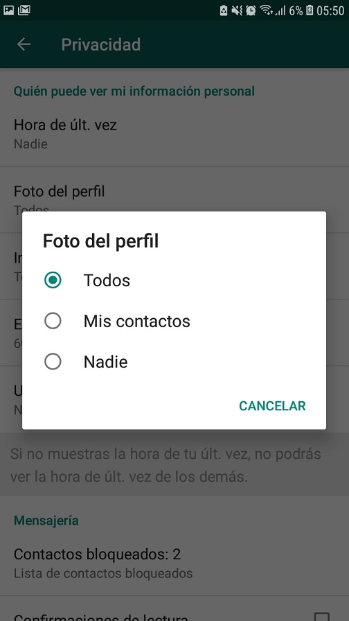 - Allí vas a poder determinar nuevamente quién puede ver tu foto de perfil y lo más probable es que se solucione el problema de que algunas personas ven tu foto y otras no.