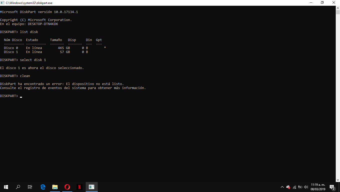 - Una vez que lo hayas escogido, tienes que eliminar toda la información del disco que hayas tomado como elección, por medio de ese comando, de igual forma, vas a reestructurar su raíz.