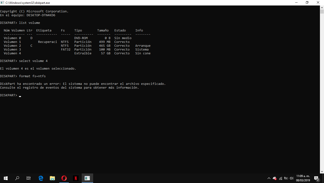 Windows no puede formatear el volumen porque esta sin conexion y no detecta USB