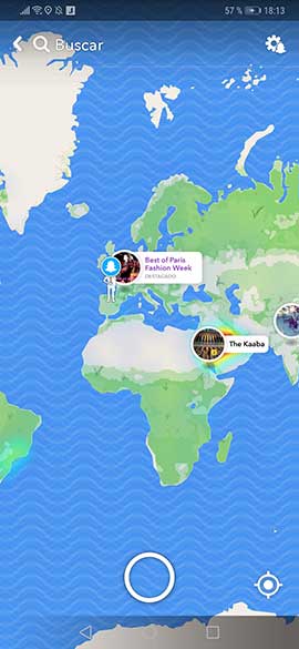 El Mapa de Snaps es un mapa interactivo en donde puedes observar la ubicación aproximada de tus amigos al momento en que publican sus Snaps. Este mapa también te permite ver el país y la cuidad en el que se encuentran en ese momento.