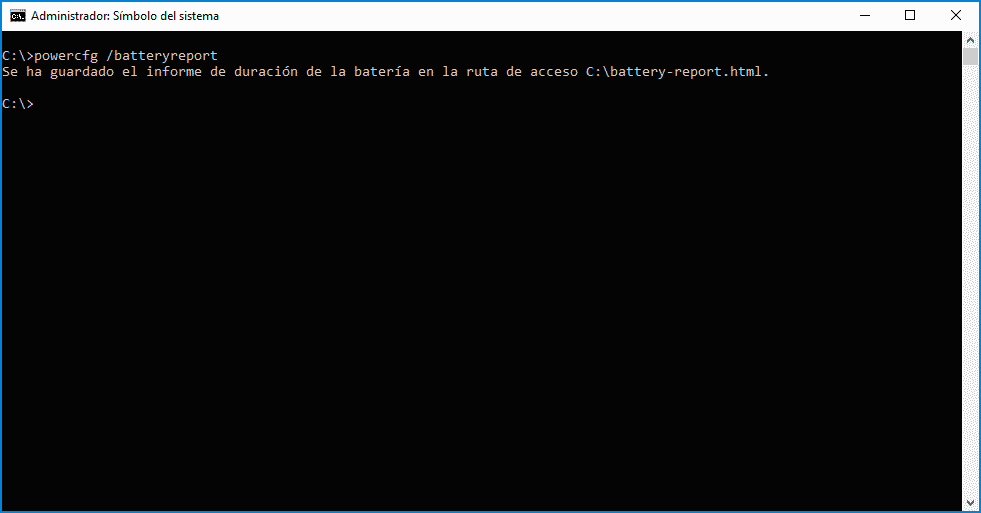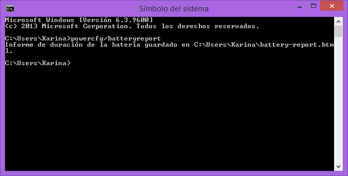 2. Escribe el siguiente comando sencillo: powercfg /batteryreport