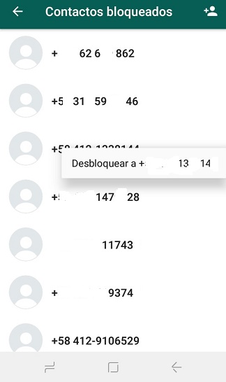 - Por último, seleccionas “Contactos bloqueados”, buscas el contacto o el número de la persona, lo mantienes presionado unos breves segundos y le das a “Desbloquear