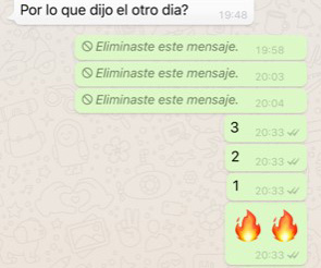 • Para finalizar, podrás observar que ya el mensaje desaparecerá y en su lugar se te mostrara una clave que dice “Eliminaste este mensaje”.