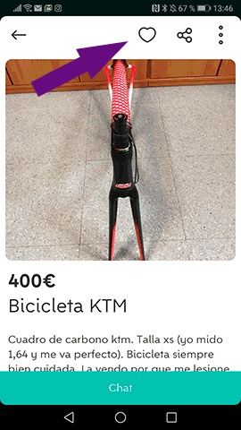 Por ejemplo, si buscas una bici, puedes ir viendo las ofertas disponibles y lo que te ofrece cada una de ellas, e ir dando al corazón en las que quieres destacar porque te gustan mas. OK.