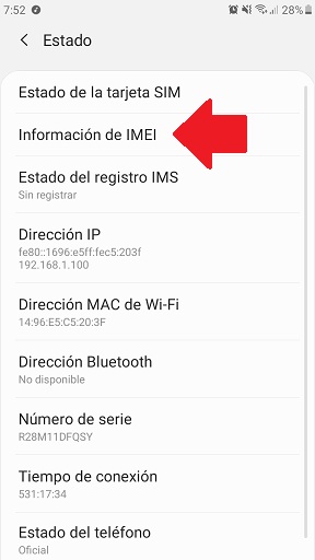 - Elige la opción que se llama Información de IMEI
