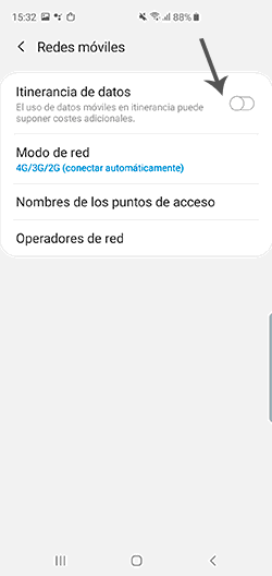 Aquí verás que aparece “Itinerancia de datos” y puedes activarlo o desactivarlo.