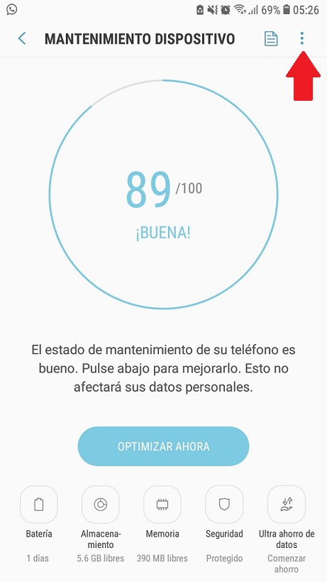 - De entre todas estas opciones, necesitas ingresar a la que tiene el título de “Mantenimiento dispositivo”, en la cual se pueden gestionar aspectos como la memoria del dispositivo, la batería, el almacenamiento, entre otras.