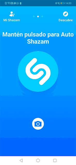 - Cuando escuches alguna canción que te guste tan solo debes abrir la aplicación y acercar el teléfono a la fuente del sonido, una vez que lo hayas hecho pulsa el botón central de la aplicación.