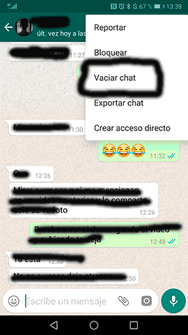 - Si es un grupo y vacías chat, nadie se entera. Si un grupo lo eliminas si porque sales del grupo y en el grupo se informa de que tú te has marchado del grupo.