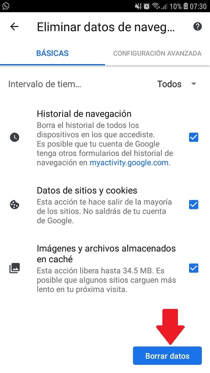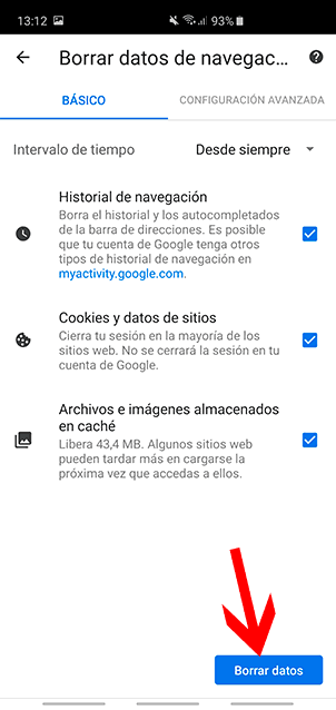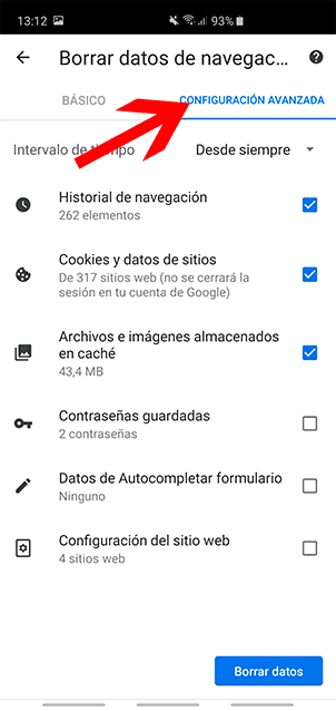 6. En Configuración avanzada tienes más opciones de borrado de datos.