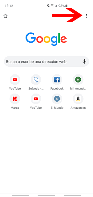 1. Abre la página de Chrome y pulsa sobre los 3 puntos verticales de arriba a la derecha.