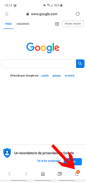 1. Abre la aplicación de Internet. Pulsa en las tres líneas verticales de abajo.