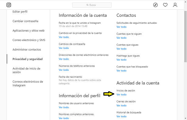 Tal y cómo dices, si tienes sospechas de que han podido entrar en tu Instagram, lo mejor es que lo compruebes en los inicios de sesión siguiendo esta ruta: