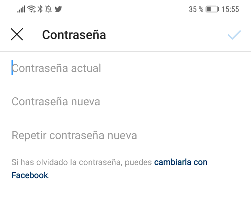- Después, solamente coloca la contraseña actual de tu cuenta y la contraseña nueva dos veces.