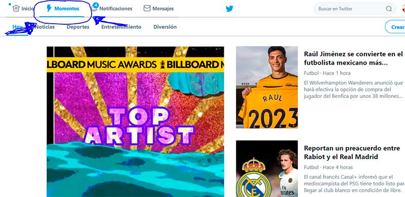 Dirígete hacia ícono del rayo en la página principal de Twitter y de inmediato vas a poder notar muchos tuits que contienen historias de momentos que están siendo importantes y lo mejor, es que se clasifican dependiendo del tipo de momento, sea de una noticia importante u otra cosa.