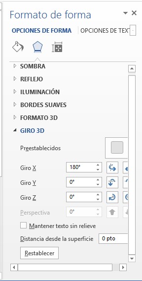 Procedimiento para aplicar el efecto espejo en Word 2016 y 2019:
