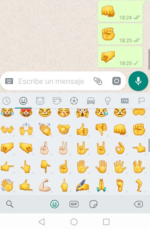 La plataforma de mensajería instantánea WhatsApp ofrece a la gran cantidad de usuarios la posibilidad de incorporar a sus conversaciones una variada gama de emojis de manera de hacer más divertida la comunicación, las opciones que ofrece van desde los emojis más sencillos como ropa, animales, hasta unos más específicos como puede ser un puño.