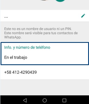 La “Info” significa “Información” y se encuentra en la misma entrada de configuración relacionada con el perfil de tu WhatsApp. Pues como se dijo es la información de ti que quieres dar a conocer al resto.