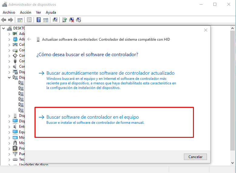 Hay un procedimiento para realizar esta actualización que es mediante el Administrador de dispositivos de tu ordenador. Para este caso debes hacer lo siguiente: