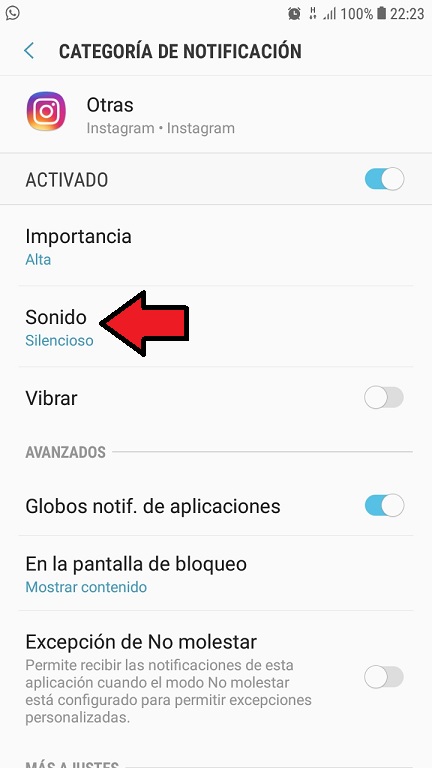 Debes saber que tienes que estar pendiente al momento de salir de estas configuraciones del sonido de la herramienta, ya que debes ver en todo momento la palabra “Activado” en la parte superior donde se muestra el icono de “Instagram”.
