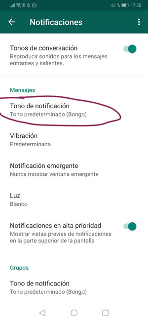 De todos modos, si lo que quieres es que se diferencia de WhatsApp y no quieres descargar ninguna otra app, lo mejor es que en este caso personalices las notificaciones de WhatsApp. Te digo rápido como: