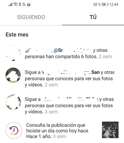 - A continuación, se te abrirán todas las notificaciones que has tenido a lo largo del tiempo, desde las actuales hasta las más antiguas y no solo referente a ti, sino también a las personas que sigues.