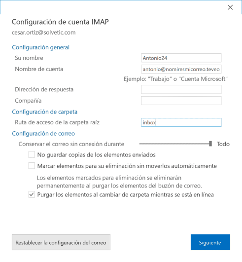 - Seleccionas con dos clic la cuenta correo IMAP de los errores.